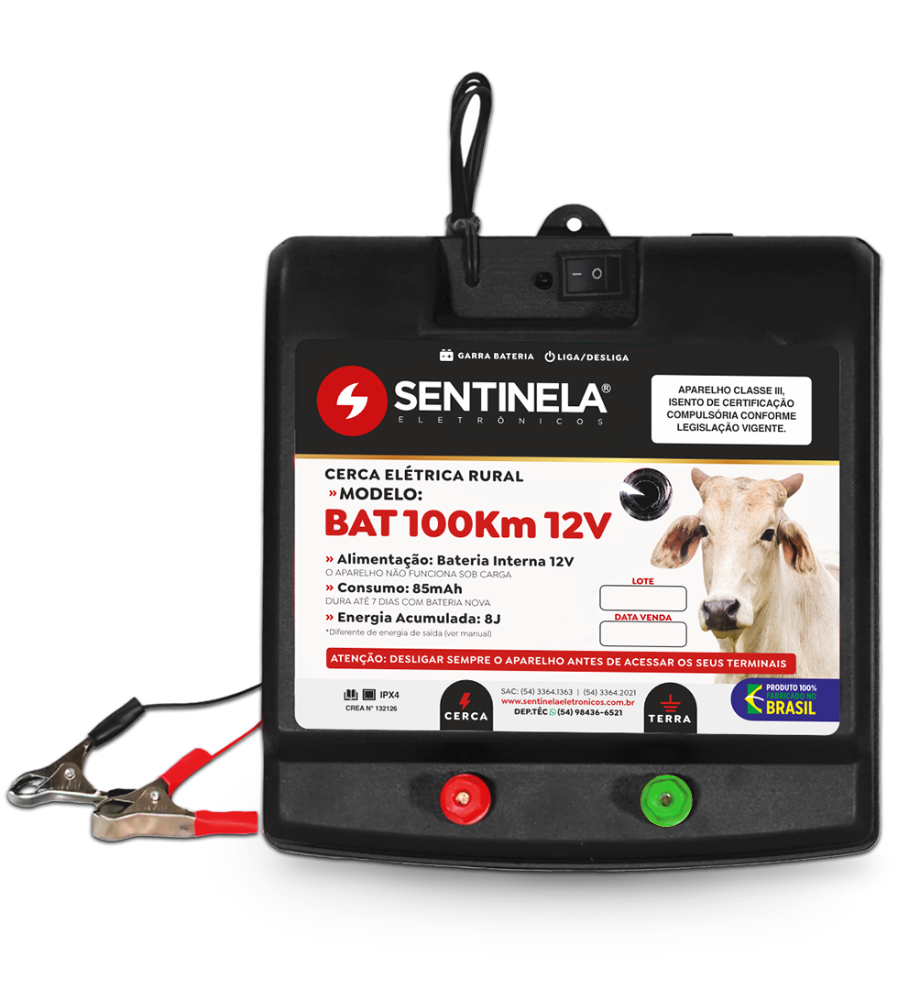 Eletrificador de Cerca Modelo Super Turbo Bateria 100km 12v